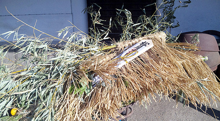 番条町では2月1日が小正月。翌2日は、とんど。予め正月飾りや旧年の御札を一輪車に乗せ、準備完了。当日は夜明けの7時前から決められた田んぼで火をつけます。筆者の子供の頃は、どの家も「どうがん」と呼ばれる一本の竹と藁で作られた正月飾りを作りましたが、近年は廃れ、焼かれる飾りも少なくなりました。