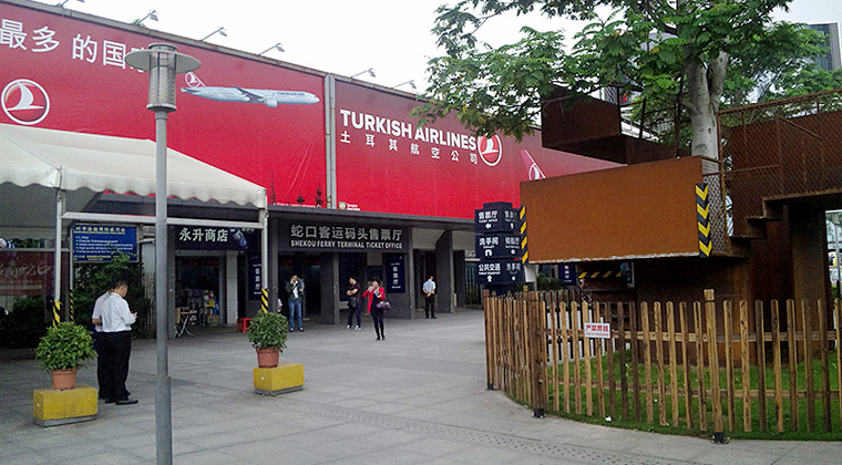 私の定宿は高層ビルの林立する深圳市街地にあり、最寄りの大劇院駅から地下鉄2号線に乗ると50分で蛇口港(じゃこうこう)駅に着きます。香港空港行フェリーは一時間おき、乗船券を買って航空会社の窓口でチェックイン。