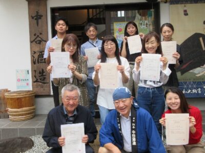 酒蔵コメント:柳町醸造所最初の醸造体験。六代目当主の中谷自身が担当しました。初めてのことでとまどうこともありましたが、無事終了。皆様に喜んでいただけました。